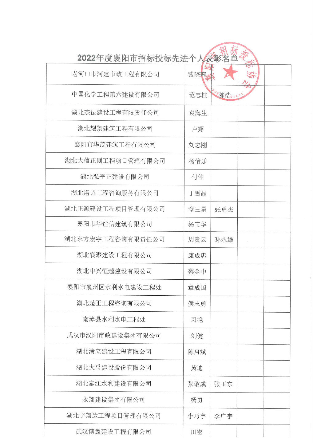 关于2022年度襄阳市招标投标先进个人 评选结果的表彰通报