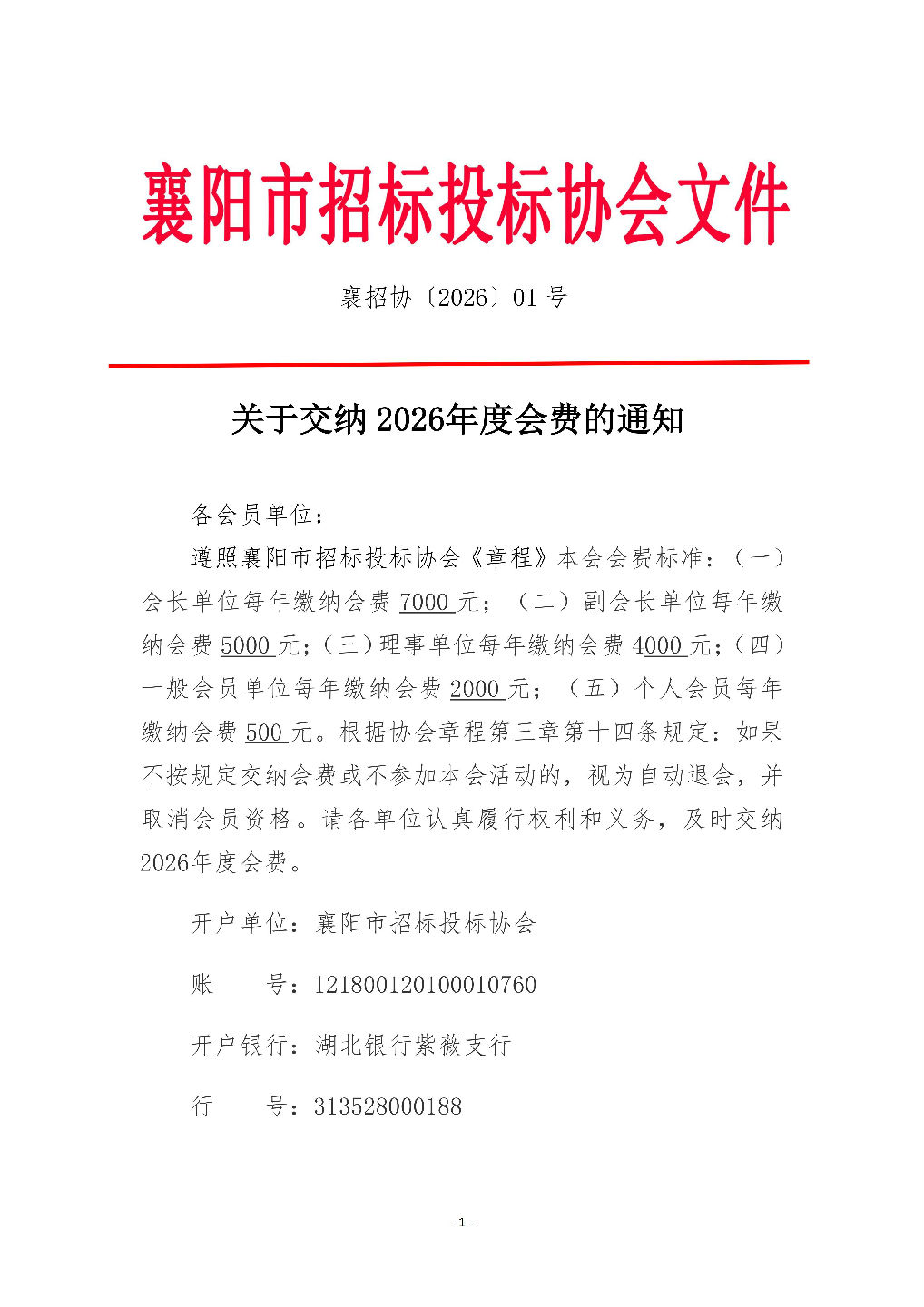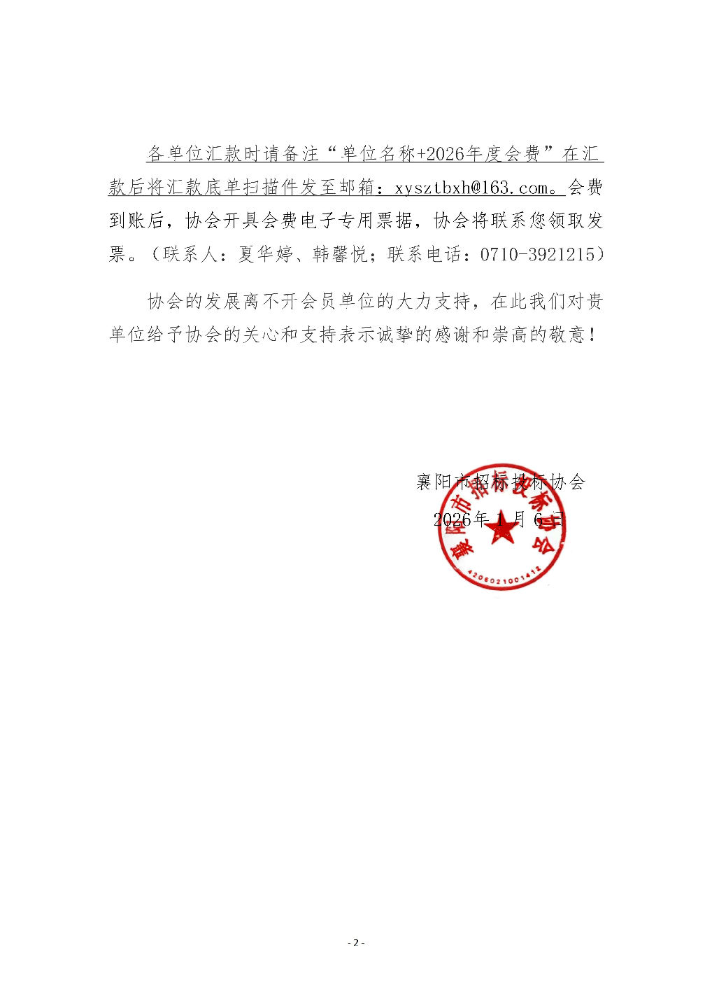 关于缴纳2026年会费通知